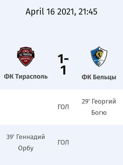 МФК «Тирасполь» VS ФК «Бельцы» = НИЧЬЯ